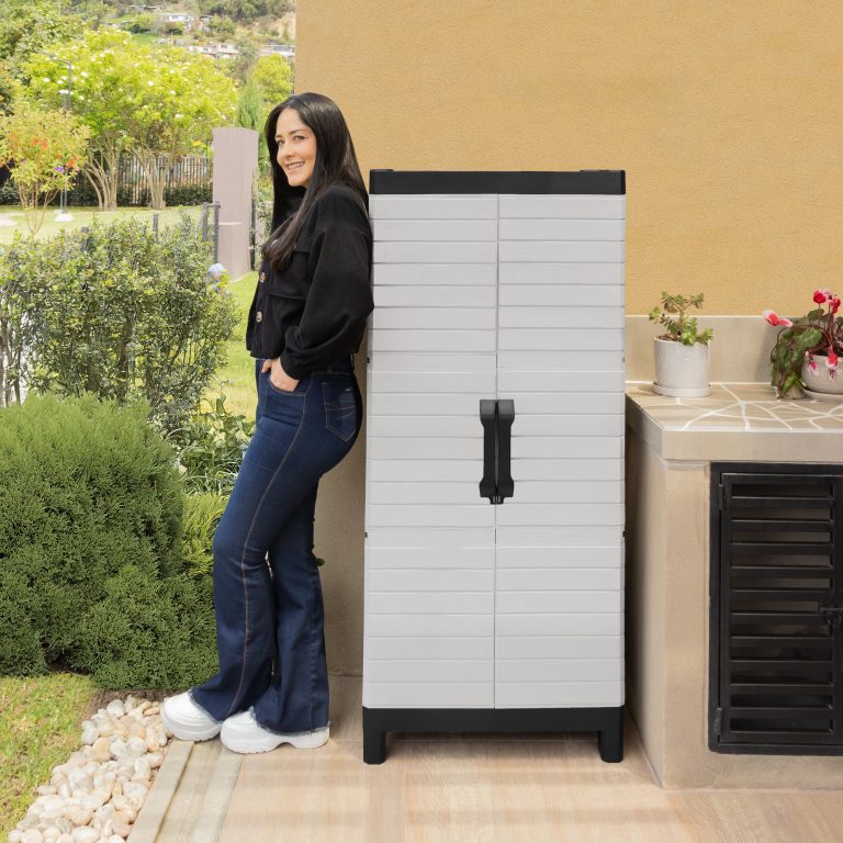 Armario plástico multiusos elaborado con material reciclado PCR (reciclado post-consumo) Contribuye al cuidado del planeta sin perder calidad ni estilo.