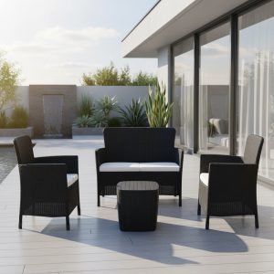 Este juego de sala exterior para jardín tipo rattan es ideal para disfrutar del aire libre con estilo y comodidad. Con un diseño clásico y elegante, este set de 4 puestos es perfecto para reuniones al aire libre o simplemente relajarse en la sala. en el jardín o terraza El modelo Capri cuenta con asientos…