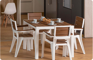 Disfruta de una agradable estancia con tu familia y amigos con nuestros comedores para interiores o exteriores. ¡Descubre nuestros diseños exclusivos que te enamorarán!