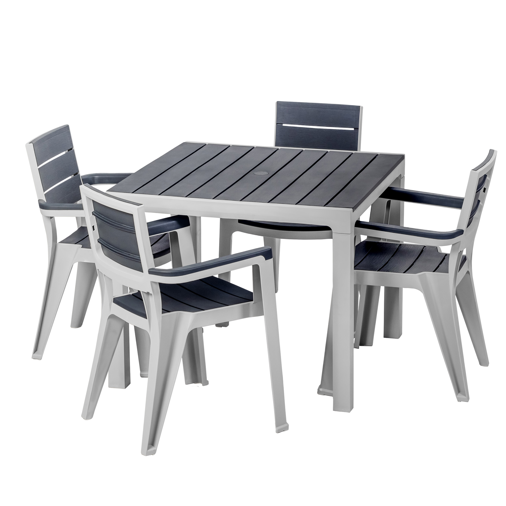 El conjunto incluye cuatro sillones Capri completamente ensamblables, una mesa Madeira cuadrada de 90x90cm, cuatro cojines básicos con tela antifluidos, todos los herrajes necesarios para el armado, instructivos detallados paso a paso y la garantía correspondiente. Cada componente viene empacado de forma segura en una sola caja para facilitar el transporte y almacenamiento. Todo lo necesario para disfrutar inmediatamente de tu nuevo comedor está incluido en la compra. No requieres herramientas adicionales ni accesorios extras para completar el armado.